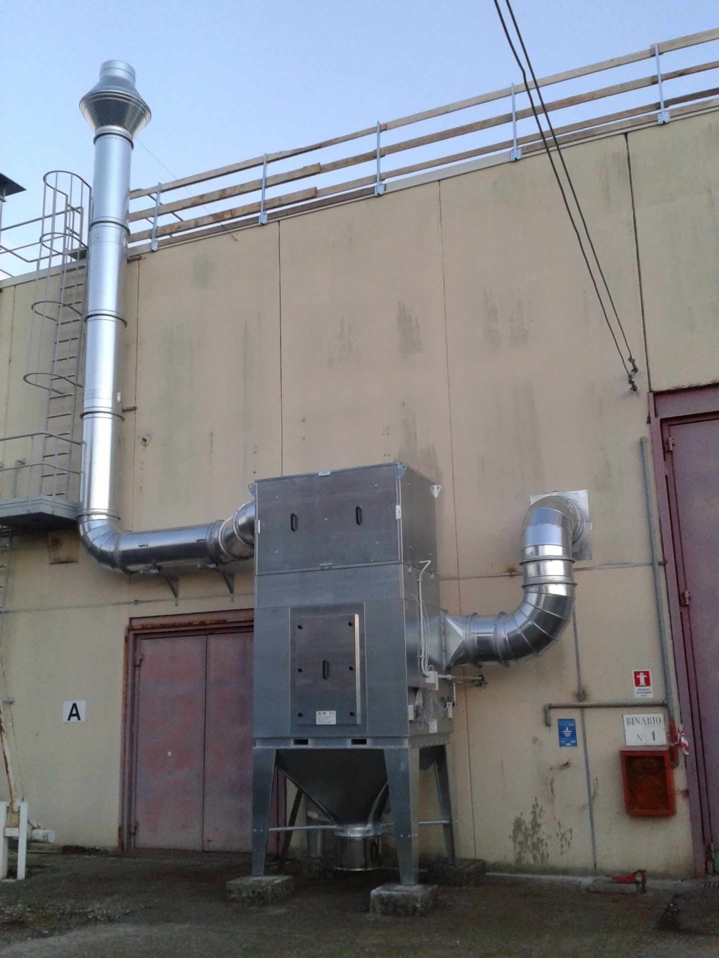 La separazione delle sostanze nocive aspirate avviene tramite sistemi studiati sulla base di svariate esperienze in tali settori (cicloni, filtri a tasche, filtri a maniche, filtri a carboni attivi etc). L’aria pulita viene immessa nell’ambiente per mezzo di camini di espulsione completi di prese per analisi fumi a norma.