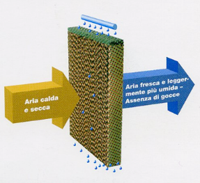 Più la temperatura è calda e più l’aria è secca, più il raffreddamento può avvenire per evaporazione: l’effetto di raffreddamento è migliore quanto più è necessario.