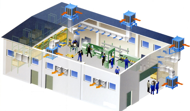 Realizziamo impianti di raffrescamento e riscaldamento per industrie, fabbriche, zone di lavoro particolari, andando a creare un sistema a ricircolo d’aria.